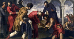 (Iv 21,1-19) Isus istupi, uzme kruh i dade im, a tako i ribu. U ono vrijeme:Isus se ponovno očitova učenicima na Tiberijadskome moru. Očitova se ovako: Bijahu zajedno Šimun Petar,